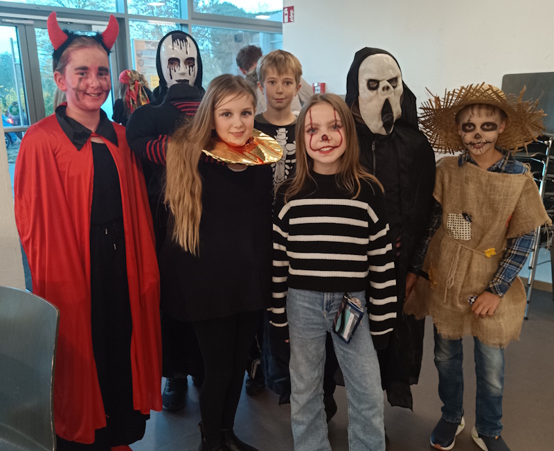 Nach den Herbstferien feierte die Unterstufe in der Mensa eine fröhliche Halloween-Discoparty.