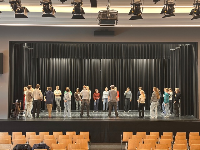 Am 12. Februar fand ein Workshop mit dem Theaterpädagogen und Schauspiellehrer Matthias Winter statt. Unter dem Titel „Stehen, Sprechen, Wirken“ arbeiteten rund 30 Schülerinnen und Schüler intensiv an Stimme, Präsenz und Bühnenwirkung. Ein Schwerpunkt lag dabei auf dem chorischen Sprechen, das für die geplante Inszenierung von „Lysistrata“ eine wichtige Rolle spielen wird. In verschiedenen Übungen ging es darum, Textbausteine aus dem Stück gemeinsam zu sprechen, aufeinander zu hören und als Gruppe rhythmisch und sprachlich zusammenzuwirken. Dabei entstanden viele neue Ideen für die spätere Bühnenarbeit. Gleichzeitig trug der Workshop spürbar dazu bei, das Ensemble enger zusammenzubringen. Die konzentrierte Arbeit, aber auch die vielen spielerischen Übungen sorgten für eine sehr offene und produktive Atmosphäre. Vielen Dank Matthias!
